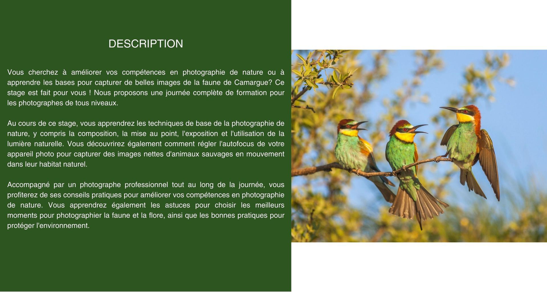 Rejoignez-moi près des Saintes Maries de la mer pour une journée d'initiation ou de perfectionnement à la photographie animalière