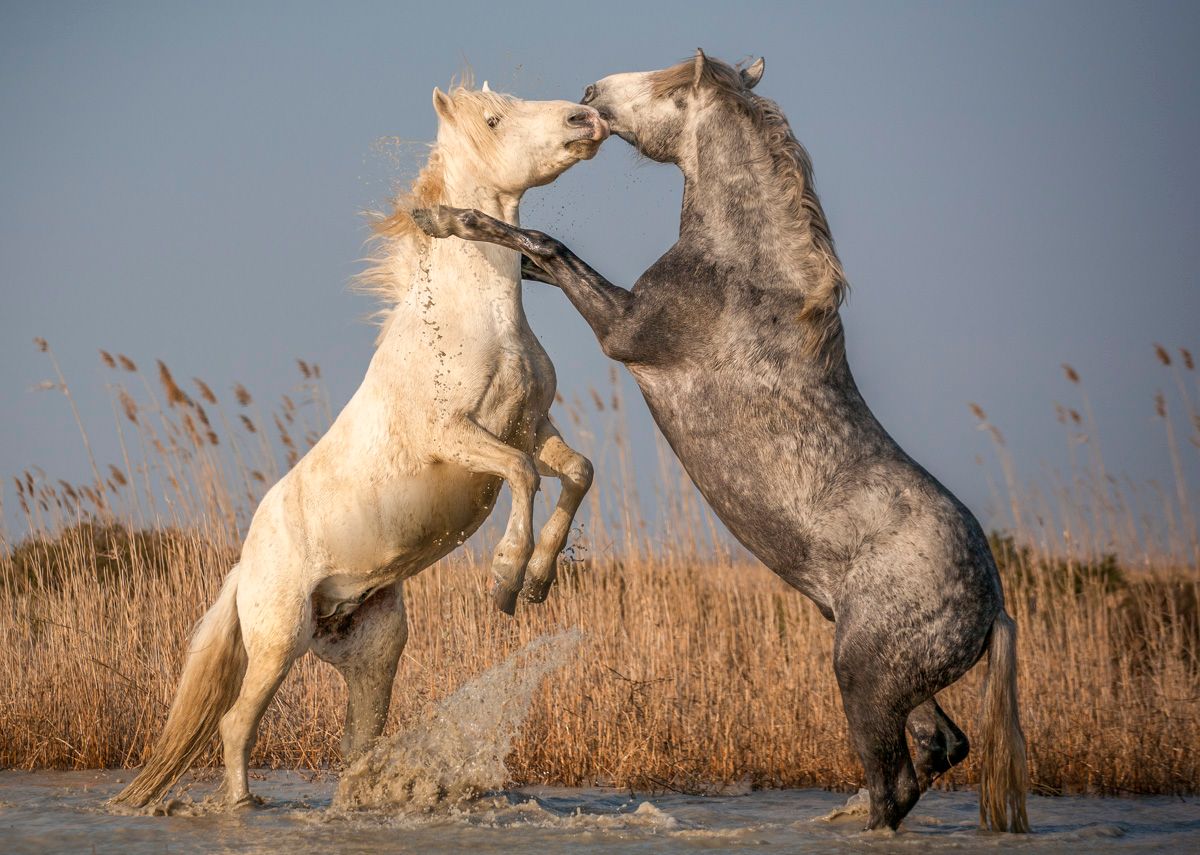We get up early, have a quick cup of coffee, tea and cookies at the hotel, then leave for our morning photo shoot. We'll be photographing two young stallions challenging each other to a spectacular show of strength (we're using young horses to keep it a game, not a real fight, so no animals get hurt). Back to the hotel for breakfast. At the end of the day, we set off again to photograph another herd galloping across a pond. Back to the hotel, dinner in town and overnight at the hotel.